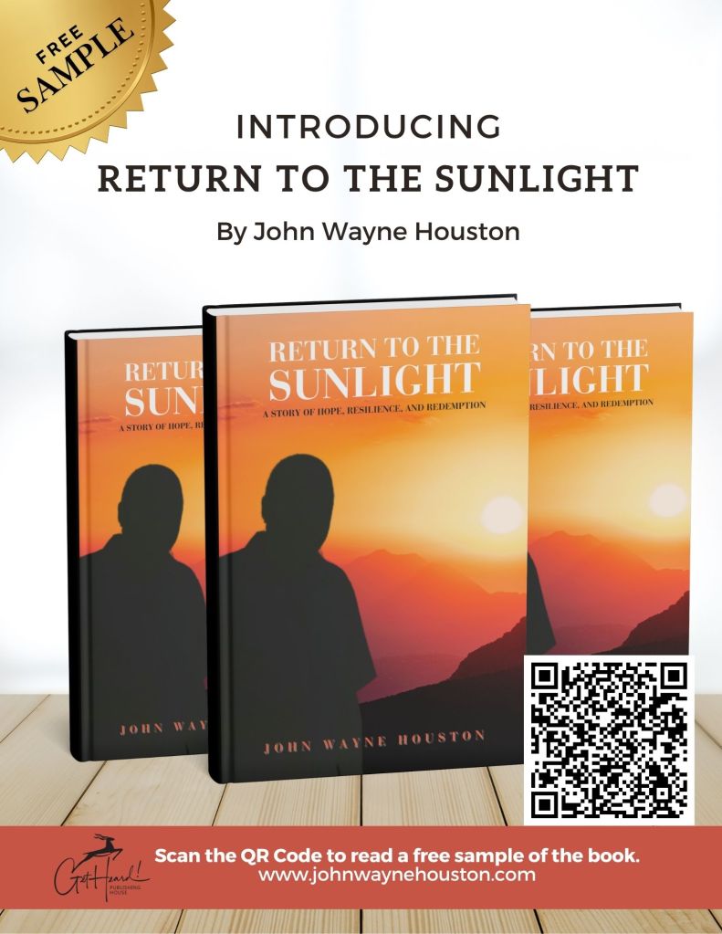 Hey! Marisa here! The book launch and release date has been pushed back a week! No worries though, we’ve got a virtual event for you to attend where you will get all the info on John, the book and what’s happening! Register at the link below for the free virtual event and don’t forget, you can still use the QR code in the image below to read a sample from Return to the Sunlight!